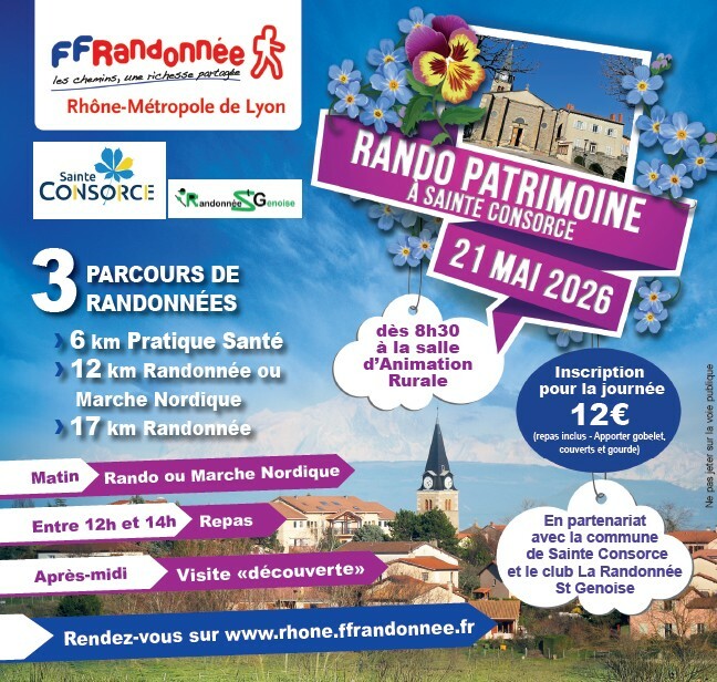 Celle-ci, organisée par la FFRandonnée Rhône - Métropole, se déroulera à SAINTE CONSORCE.
