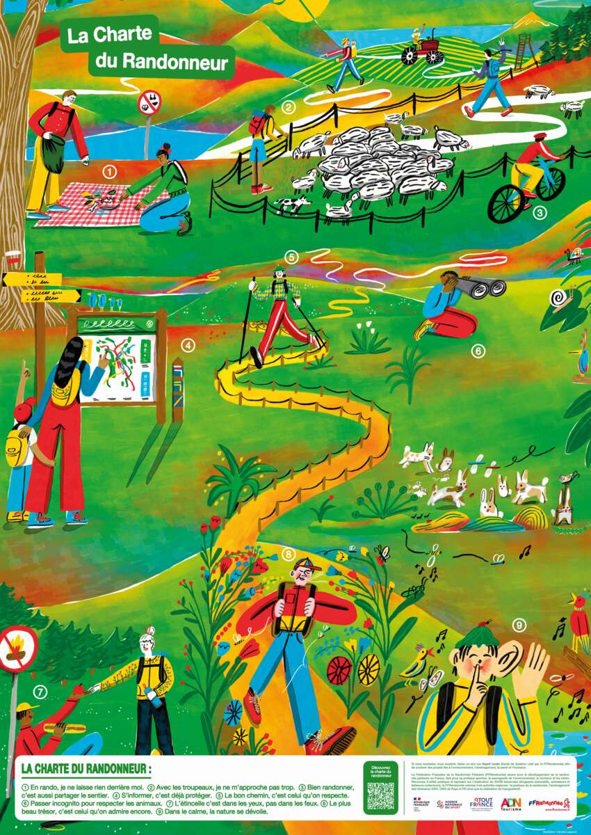 Découvrez et adoptez les 9 gestes « essentiels » de cette nouvelle Charte du Randonneur et participez à une pratique durable, partagée et harmonieuse du territoire. Elle s’adresse à tous : marcheurs, clubs, professionnels du tourisme, collectivités…